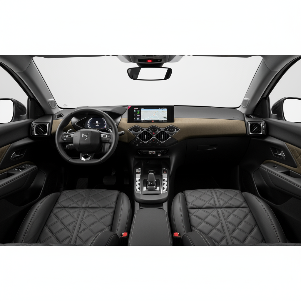 A tecnologia no DS 3 Crossback integra-se de uma forma única, servindo o design e a experiência do condutor. O painel de instrumentos digital e o ecrã tátil central apresentam a informação com uma estética cuidada e personalizável. Embora o seu foco seja o luxo, não descura os assistentes de condução que proporcionam segurança e confiança, fundindo a inovação com um ambiente de sofisticação e conforto que o faz sentir-se num veículo de um segmento superior.