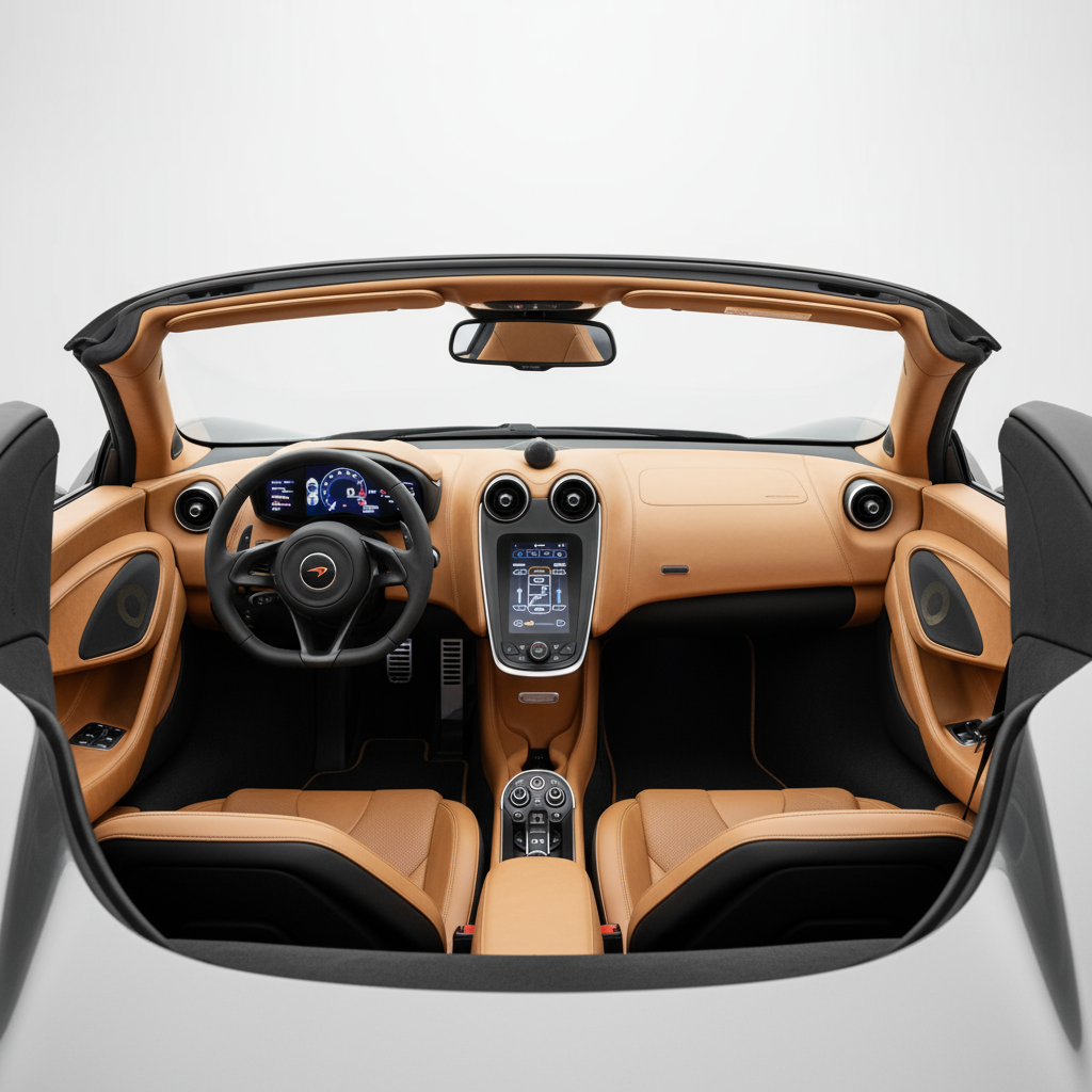 O design do McLaren 570S Coupé é uma fusão perfeita de aerodinâmica e estética. Cada linha, cada curva, é pensada para otimizar o fluxo de ar e maximizar a carga aerodinâmica, mas também para cativar o olhar. As suas portas diédricas, que se abrem para cima e para a frente, são um espetáculo em si mesmas, uma característica distintiva da marca que adiciona um toque de dramatismo e exclusividade. A silhueta é baixa e larga, com uma postura agressiva que sugere velocidade mesmo quando está parado. Os faróis LED afiados e as proeminentes entradas de ar laterais não só cumprem uma função prática, mas também contribuem para a sua imagem futurista e esportiva. O interior, embora centrado no condutor, não poupa no luxo e nos materiais de alta qualidade, com um design minimalista e funcional que coloca tudo ao alcance da mão. É um carro que irradia sofisticação e potência de qualquer ângulo.
