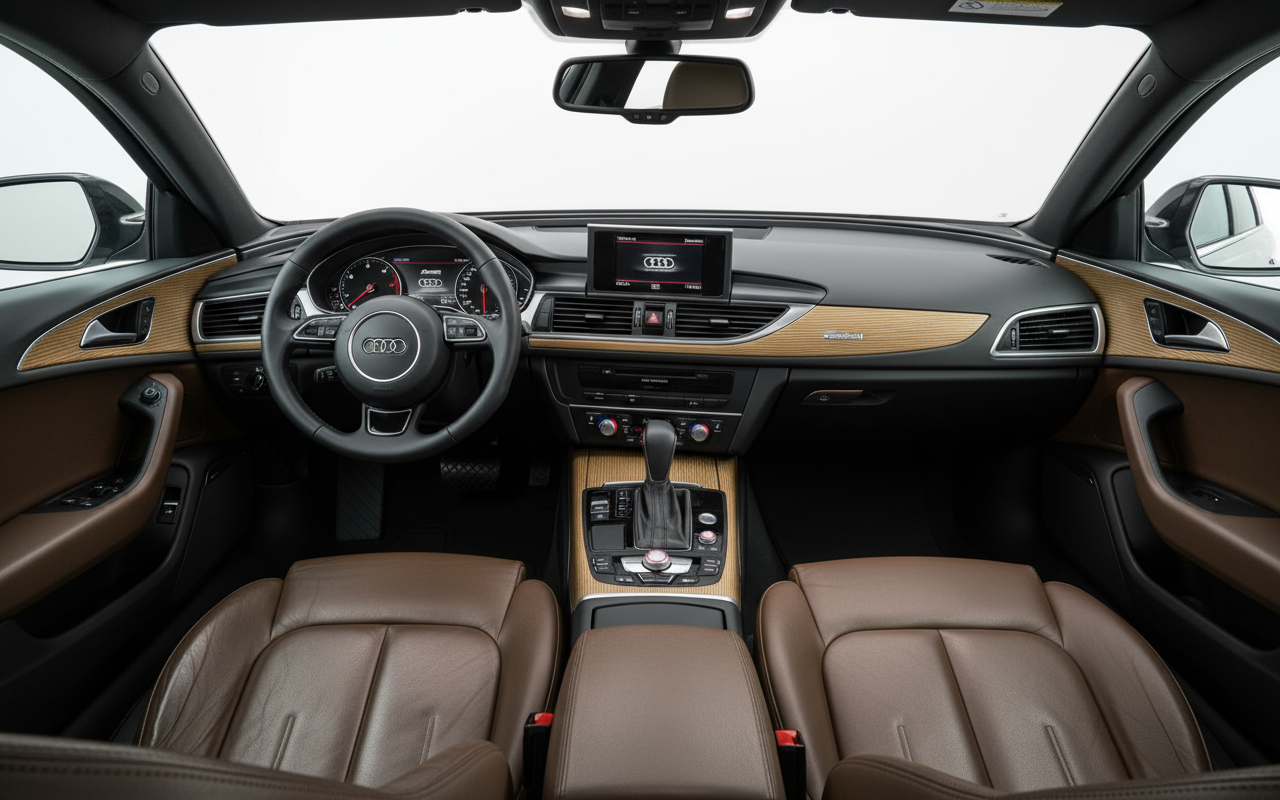 Assumir o volante do A6 Avant é mergulhar num oásis de calma e poder. O motor V6 diesel empurra com uma suavidade e força que cativam desde o primeiro instante, entregando o seu binário máximo a uma rotação incrivelmente baixa. A sensação é a de uma força inesgotável e serena, gerida na perfeição pela transmissão S tronic de dupla embraiagem, que realiza as mudanças de forma quase impercetível. A estabilidade em estrada é soberba, filtrando as irregularidades com uma eficácia que o isola do mundo exterior, enquanto a sua direção precisa o conecta com o asfalto na medida certa. É um devorador de quilómetros nato, um veículo que inspira confiança e o convida a viajar sem fim.