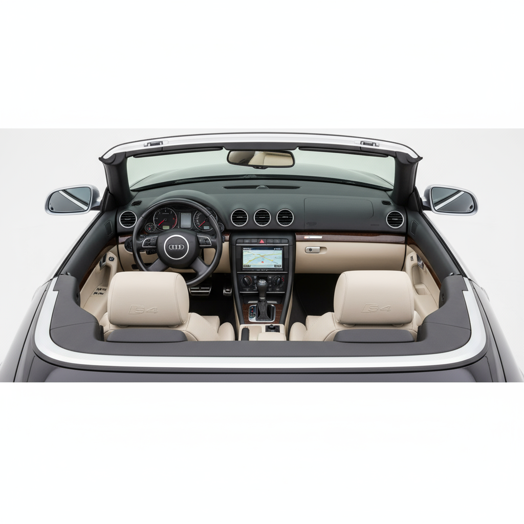 O seu design é um exercício de elegância e contenção. Baseado na carroçaria sóbria e intemporal do A4 Cabrio, o S4 acrescenta os toques certos de desportivismo sem cair na estridência. Os para-choques específicos, as jantes de 18 polegadas, as capas dos espelhos retrovisores em alumínio e a quádrupla saída de escape são pistas subtis da fera que se esconde sob o capô. É um carro que envelhece com uma graça excecional, um lobo em pele de cordeiro que combina na perfeição a classe de um cabriolet de luxo com a promessa de altas prestações.