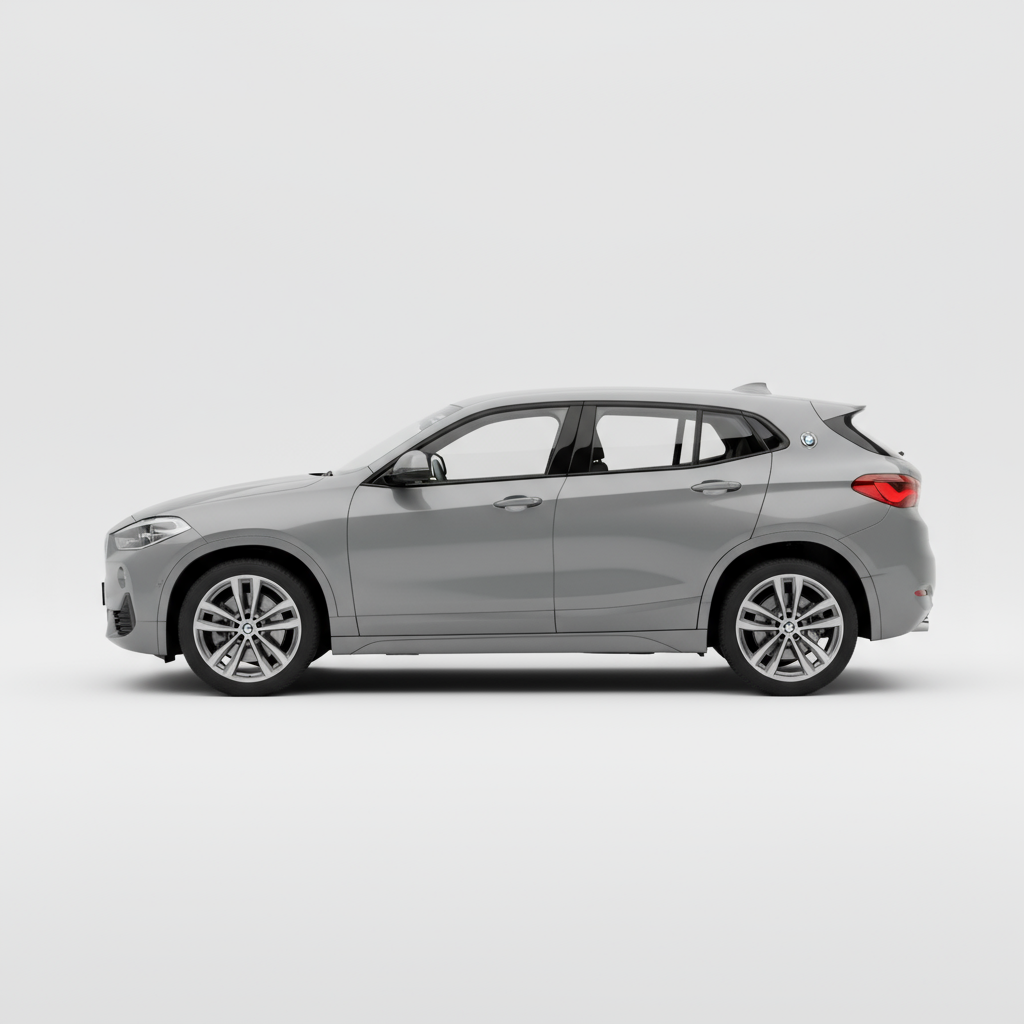 O design do BMW X2 é, sem dúvida, um dos seus pontos mais fortes e diferenciadores. Com um comprimento de 4360 mm, uma largura de 1824 mm e uma altura de 1526 mm, as suas proporções são mais atléticas e menos volumosas do que as de um SUV tradicional. A linha do tejadilho descendente confere-lhe uma silhueta de coupé, enquanto os detalhes como as grelhas invertidas e o logótipo da BMW no pilar C lhe conferem uma personalidade única. As jantes de 17 polegadas com pneus 225/55 R17 complementam a sua imagem desportiva. É um carro que não passa despercebido e que irradia dinamismo de qualquer ângulo.
