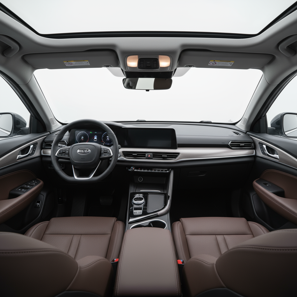 O seu design, batizado de 'Dragon Face', confere-lhe uma presença imponente e elegante na estrada. As linhas afiadas da frente contrastam com uma traseira moderna e limpa, unida por uma luz LED contínua que lhe dá uma assinatura luminosa inconfundível. Por dentro, o ambiente é de luxo e amplitude. A qualidade dos materiais e dos acabamentos transmite uma sólida sensação premium, enquanto a configuração de sete lugares reais o torna um espaço versátil e acolhedor para toda a família.