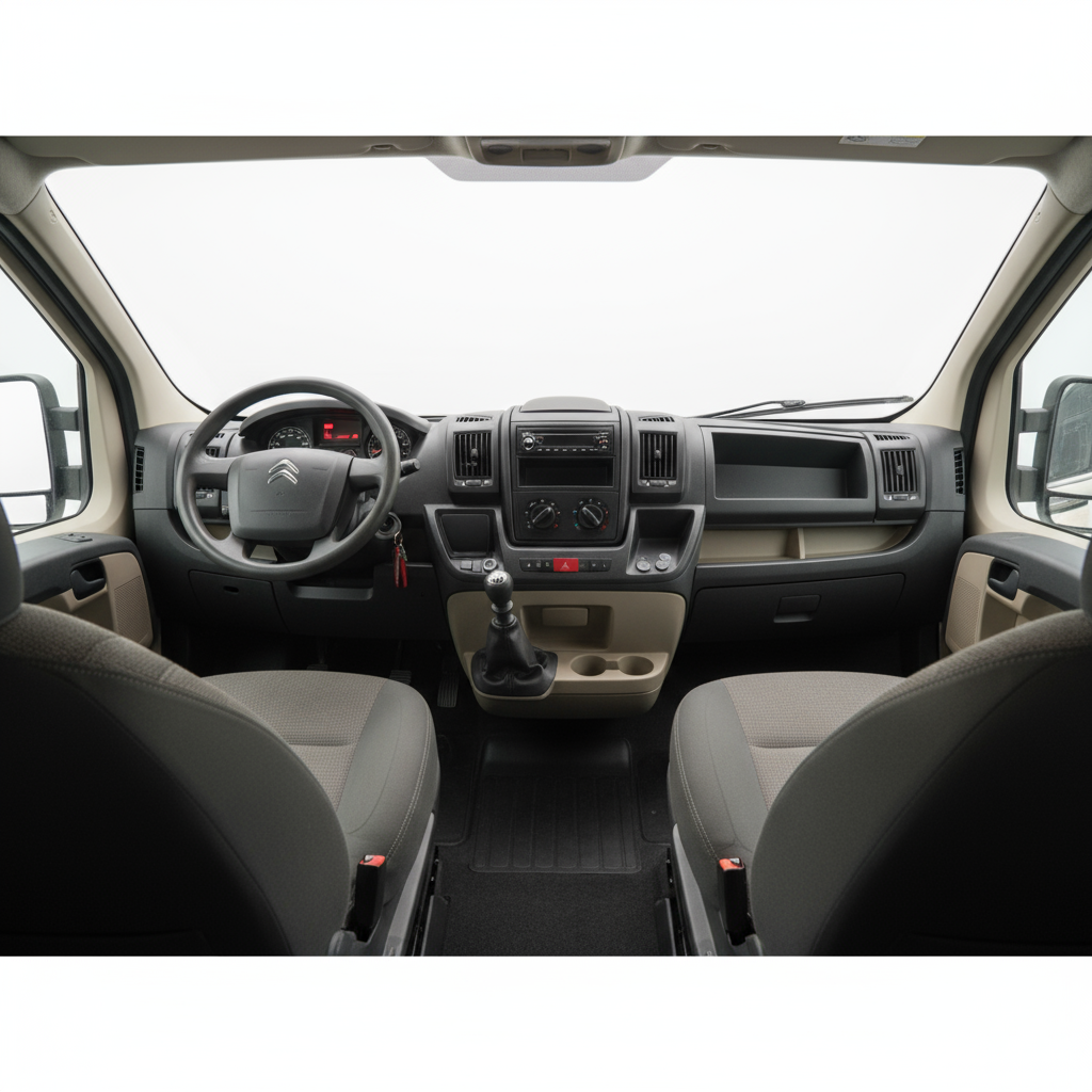A tecnologia desta Jumper é a da fiabilidade comprovada. O coração é o seu motor HDi com injeção direta common rail, um propulsor conhecido pela sua durabilidade e eficiência. Não encontrará ecrãs táteis nem assistentes de condução avançados, mas sim uma mecânica simples e robusta, com elementos como travões de disco nas quatro rodas e uma suspensão projetada para suportar peso sem fraquejar. É tecnologia que não falha, pensada para trabalhar sem complicações.