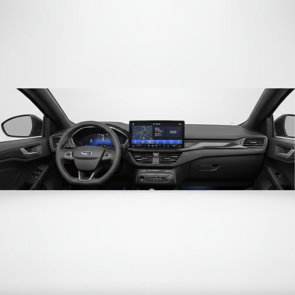 A tecnologia neste Focus está ao serviço da experiência. O sistema mild-hybrid de 48V não só melhora a eficiência e lhe confere a etiqueta ECO, como também fornece um binário extra que se sente instantaneamente. No interior, o grande ecrã central do sistema de infoentretenimento torna-se o centro nevrálgico, oferecendo uma conectividade fluida e intuitiva. As ajudas à condução velam pela sua segurança sem serem intrusivas, permitindo-lhe desfrutar da viagem com total tranquilidade.
