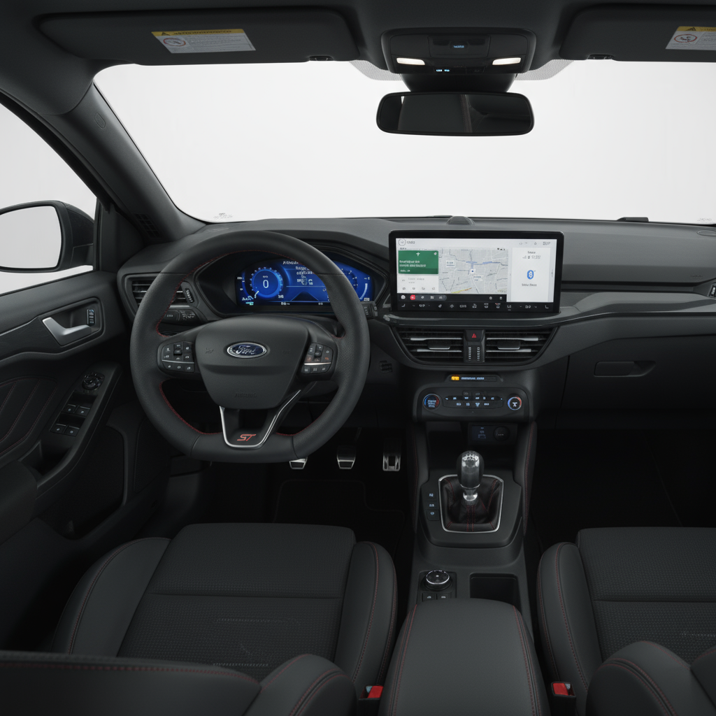 Para além da sua mecânica brilhante, o Focus ST integra tecnologia pensada para potenciar a experiência. O ecrã central gere o sistema de infoentretenimento SYNC, enquanto os modos de condução selecionáveis permitem transformar o caráter do carro, de um dócil compacto para o dia a dia a uma fera para o circuito. A tecnologia chave, no entanto, está ao serviço do desempenho, com elementos como o diferencial eletrónico de deslizamento limitado que otimiza a tração e a agilidade em cada curva.
