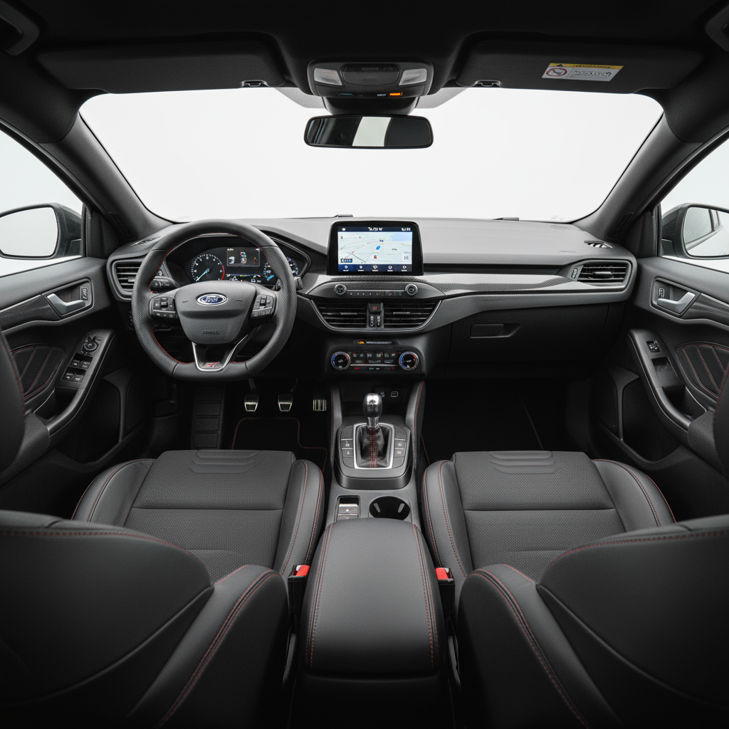 A tecnologia neste Focus ST está ao serviço do desempenho puro. O coração é o seu motor turbo de injeção direta, mas a magia reside no chassis. Com uma suspensão traseira de braços múltiplos e um diferencial de deslizamento limitado eletrónico, o carro traça as curvas com uma precisão espantosa. Travões potentes e uma direção rapidíssima completam um conjunto tecnológico focado numa só coisa: maximizar as sensações e a eficácia do condutor ao volante.