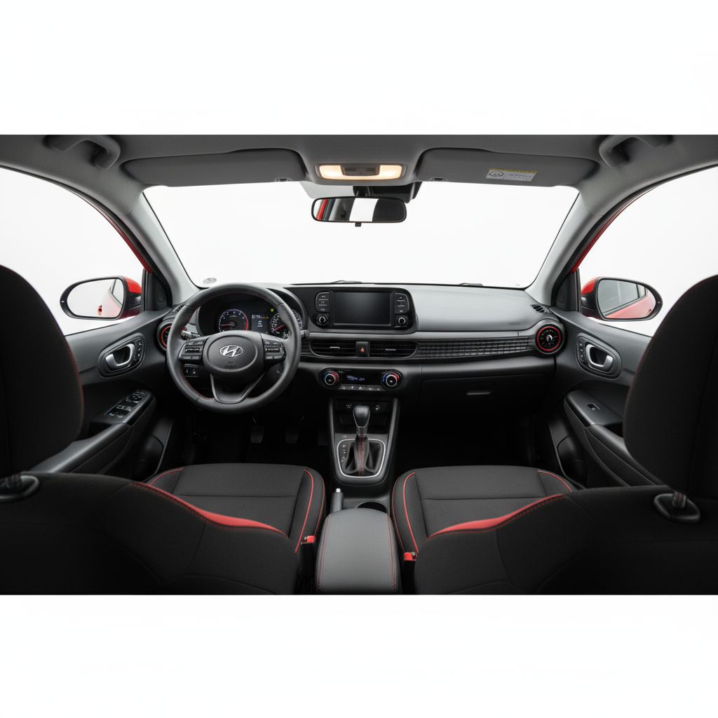 Ao volante, o i10 N Line parece um pequeno kart. O seu motor de três cilindros turbo empurra com uma energia surpreendente desde baixas rotações, tornando-o incrivelmente ágil no trânsito urbano e deliciosamente reativo em estradas secundárias. A caixa manual de 5 velocidades conecta-o diretamente à mecânica, e o seu chassis, embora simples, mostra-se firme e disposto a brincar. Não é um desportivo radical, mas cada viagem transforma-se numa pequena dose de adrenalina e sorrisos.