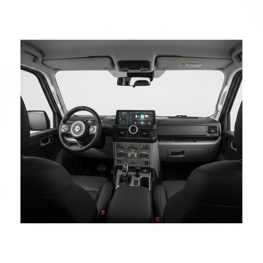 A sua estética é uma ode à funcionalidade. Cada linha quadrada, cada dobradiça exposta e cada painel robusto gritam durabilidade e propósito. Não há adornos supérfluos, apenas uma carroçaria pensada para resistir e ser prática. O interior segue a mesma filosofia: botões grandes que podem ser usados com luvas, materiais resistentes à água e à lama, e uma disposição que lembra a cabine de um avião, onde cada controlo tem uma função clara e vital.