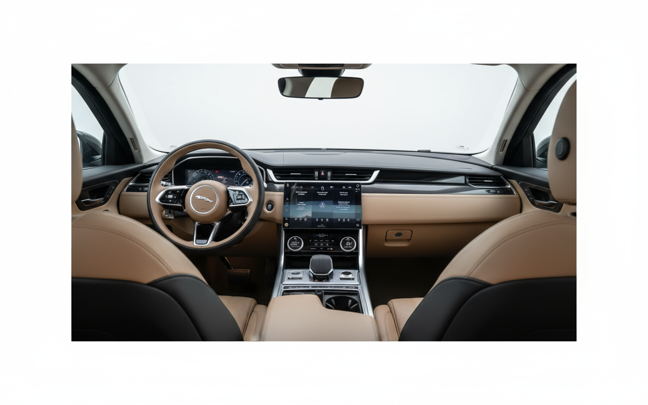 Ao volante, o XF Sportbrake sente-se como um verdadeiro grand tourer. Os seus 204 cavalos, apoiados pelo sistema MHEV, entregam a potência de forma suave e contundente, permitindo uma aceleração progressiva e decidida. A tração traseira e uma suspensão de duplo triângulo em ambos os eixos desenham as curvas com uma precisão e aprumo que encantam, combinando um dinamismo gratificante com um conforto de condução soberbo em viagens longas. A caixa automática de 8 velocidades é o complemento perfeito, refinada e rápida na sua atuação.