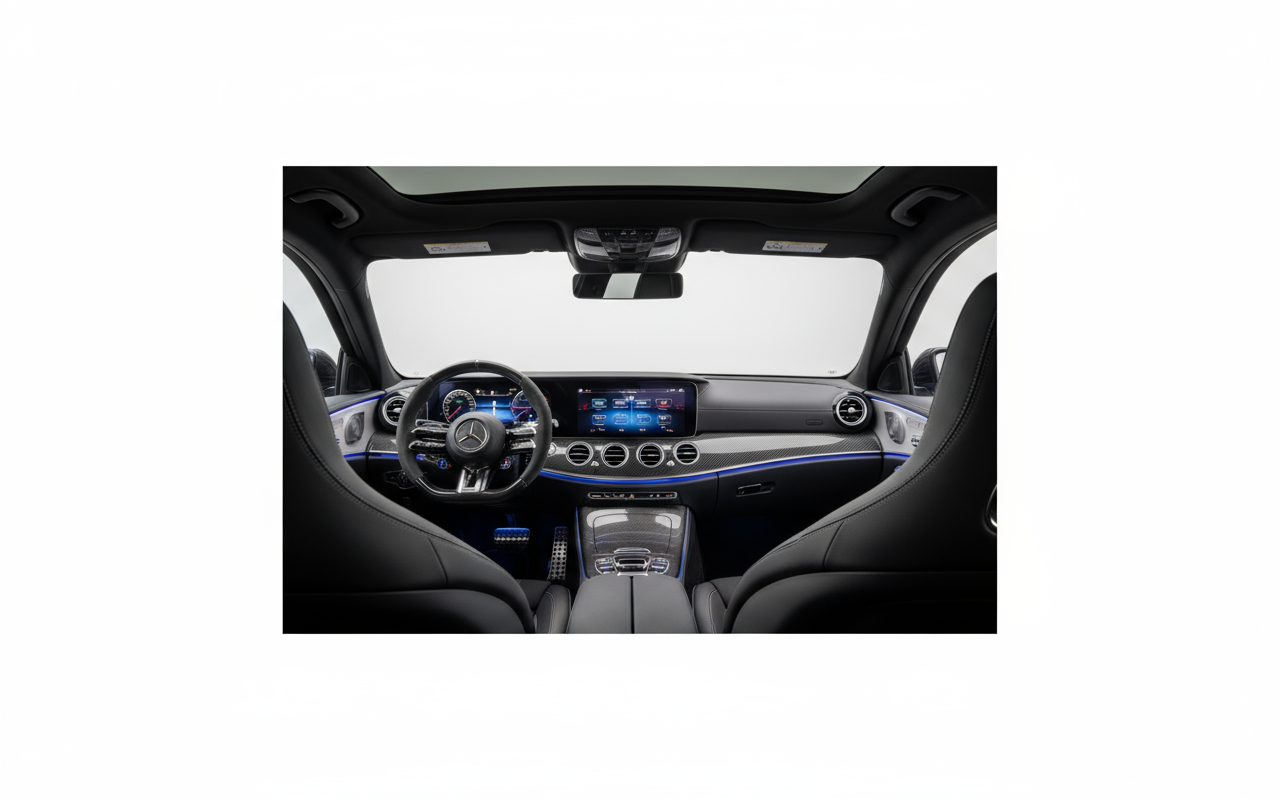 O design do Mercedes-AMG E 53 Hybrid é uma obra de arte que combina elegância e agressividade na perfeição. As suas linhas fluidas e aerodinâmicas, juntamente com a imponente grelha AMG e os faróis LED de alta tecnologia, conferem-lhe uma presença inconfundível na estrada. As jantes de 19 polegadas, com pneus 255/45 R19 à frente e 285/40 R19 atrás, não só realçam a sua estética desportiva, mas também contribuem para a sua excelente aderência. O interior é um santuário de luxo e tecnologia, onde cada detalhe foi cuidadosamente desenhado para oferecer o máximo conforto e sofisticação. Os materiais de alta qualidade, os acabamentos impecáveis e a iluminação ambiente personalizável criam uma atmosfera acolhedora e exclusiva. O ecrã central de infoentretenimento, juntamente com o painel de instrumentos digital, oferece uma interface intuitiva e personalizável que coloca toda a informação ao alcance do condutor. É um carro que não só se conduz, mas se vive, e que te faz sentir especial em cada momento.