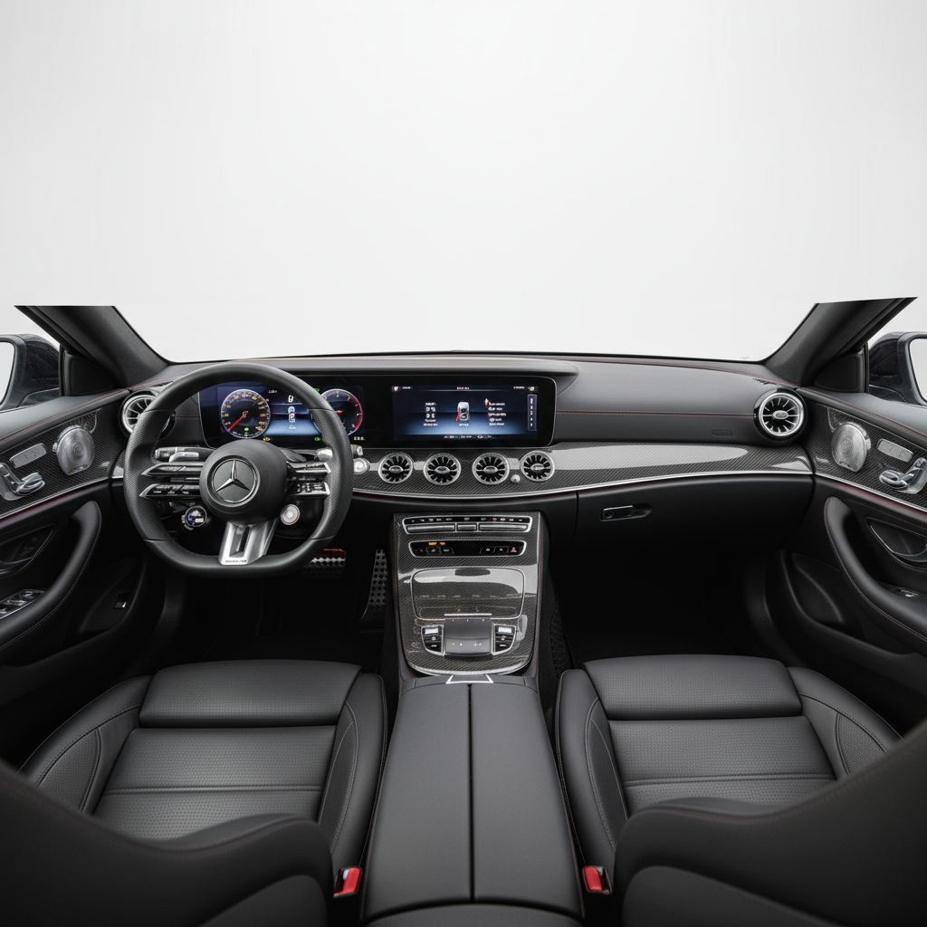 O design do Mercedes-Benz Classe E Coupé é uma obra de arte em movimento. As suas linhas fluidas e elegantes, sem pilares B, criam uma silhueta ininterrupta que irradia dinamismo e exclusividade. A grelha dianteira, com a estrela de três pontas no centro, é um selo distintivo da marca, enquanto os faróis LED de alta tecnologia lhe conferem um olhar penetrante. A parte traseira, com os seus farolins estilizados e o duplo escape, reforça o seu caráter desportivo e sofisticado. Cada detalhe, desde as jantes de 18 polegadas até aos cromados subtis, foi cuidadosamente pensado para criar uma estética que é ao mesmo tempo clássica e moderna, intemporal e vanguardista.