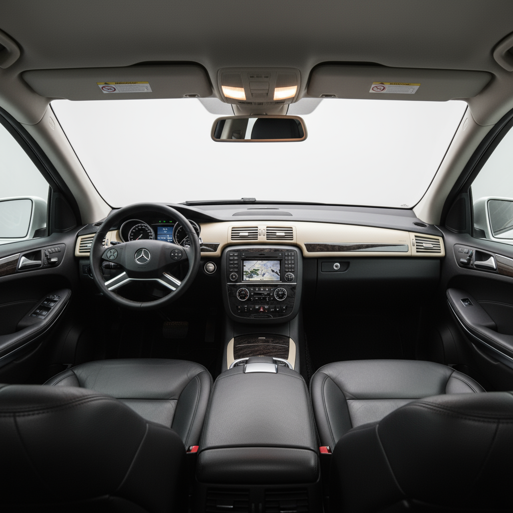 O design do Mercedes-Benz Classe R 300 de 2010 é, sem dúvida, um de seus pontos mais característicos e divisivos. Com um comprimento de 4922 mm e uma largura de 1922 mm, sua silhueta é imponente e pouco convencional, a meio caminho entre um monovolume e um SUV. A versão curta, com 5 portas e 5 assentos, oferece uma habitabilidade generosa e um porta-malas de 550 litros, ideal para famílias. O interior, fiel ao estilo Mercedes-Benz, exala qualidade e sobriedade, com materiais nobres e um design ergonômico. Embora sua estética exterior possa não ser do agrado de todos, sua funcionalidade e a sensação de espaço interior são inegáveis.