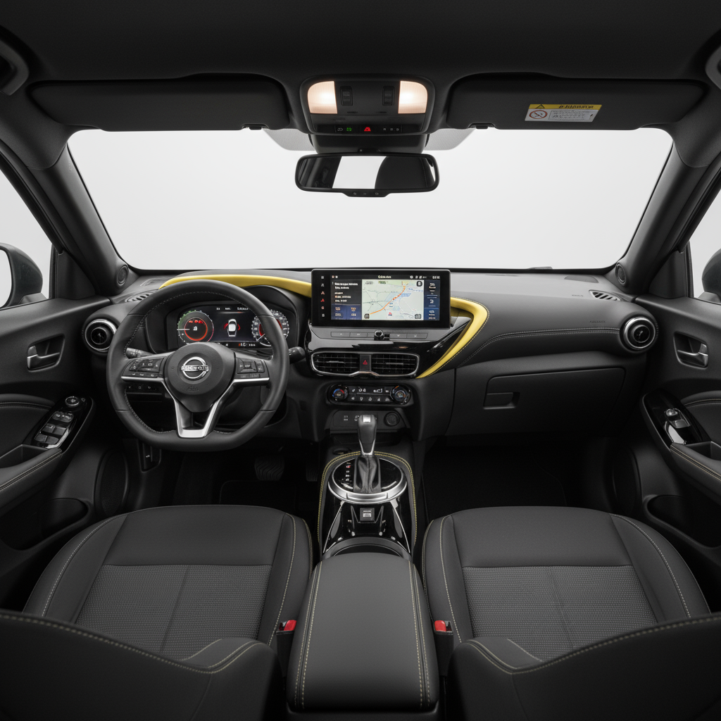 O design do Nissan Juke 2024 é, sem dúvida, o seu cartão de visita mais forte. Mantém essa estética inovadora e vanguardista que o tem caracterizado desde o seu início, com linhas fluidas e uma silhueta coupé que o distingue dos seus concorrentes. Os faróis dianteiros, com a sua forma característica, e a grelha V-Motion da Nissan conferem-lhe um olhar inconfundível. As dimensões compactas (4210 mm de comprimento, 1800 mm de largura e 1593 mm de altura) tornam-no ideal para a cidade, enquanto a sua distância entre eixos de 2636 mm promete um bom espaço interior. As jantes de 17 polegadas com pneus 215/60 R17 complementam a sua imagem robusta e desportiva. O interior, embora não detalhado nos dados, costuma seguir a linha exterior com um design moderno e funcional, procurando a ergonomia e a qualidade dos materiais.
