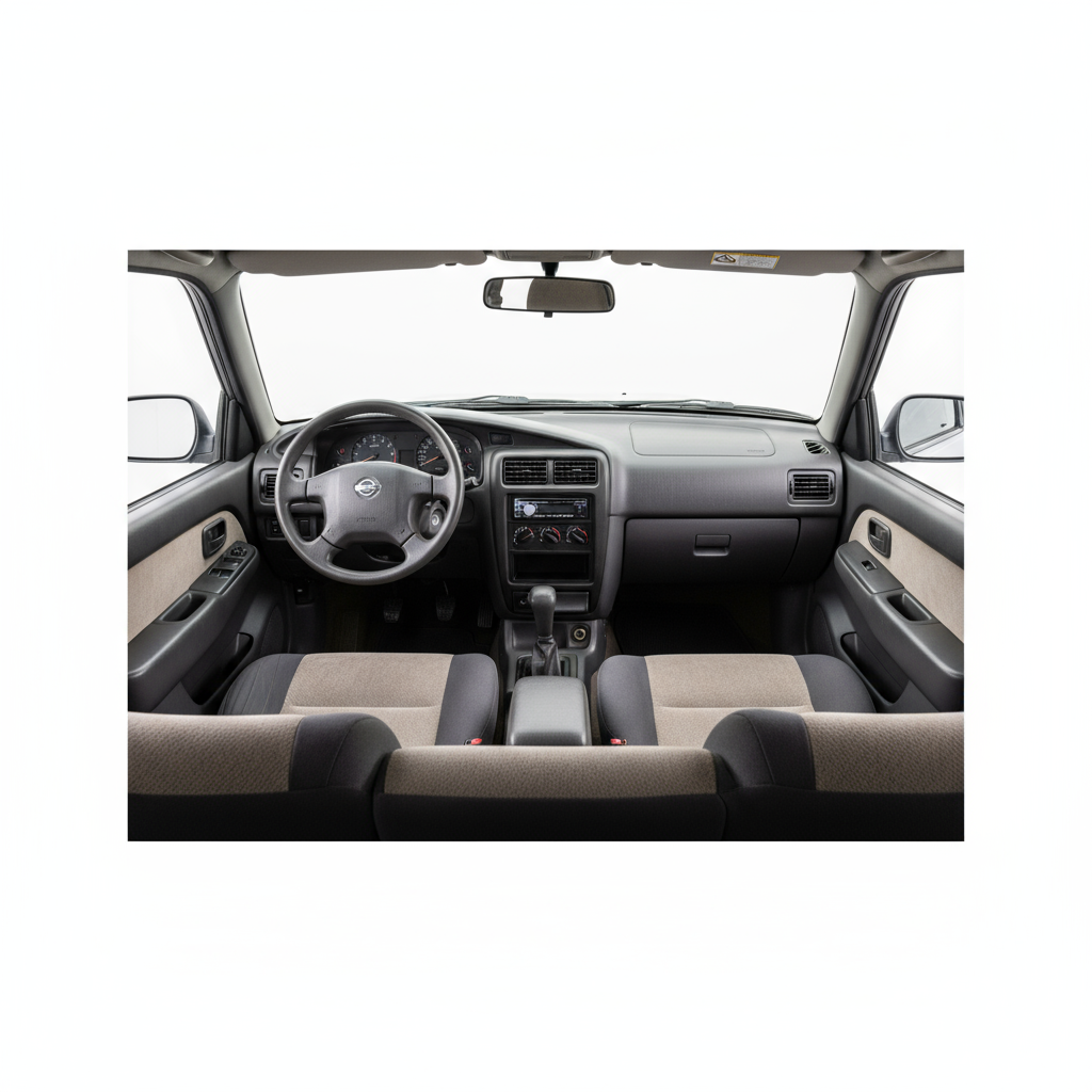 O design do Nissan Terrano 3p é puramente funcional e intemporal. As suas linhas quadradas e a sua carroçaria de 3 portas transmitem uma imagem de solidez e resistência. Com 4.217 mm de comprimento, 1.755 mm de largura e 1.830 mm de altura, e uma distância entre eixos de 2.450 mm, a sua presença é imponente. As rodas com pneus 235/70 R16 reforçam o seu caráter todo-o-terreno, enquanto o seu peso de 1.705 kg sublinha a sua construção robusta. É um design que não procura a sofisticação, mas sim a eficácia e a durabilidade.