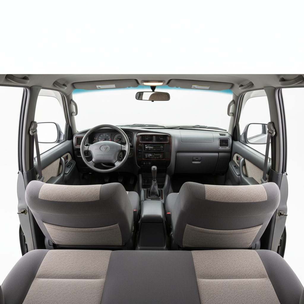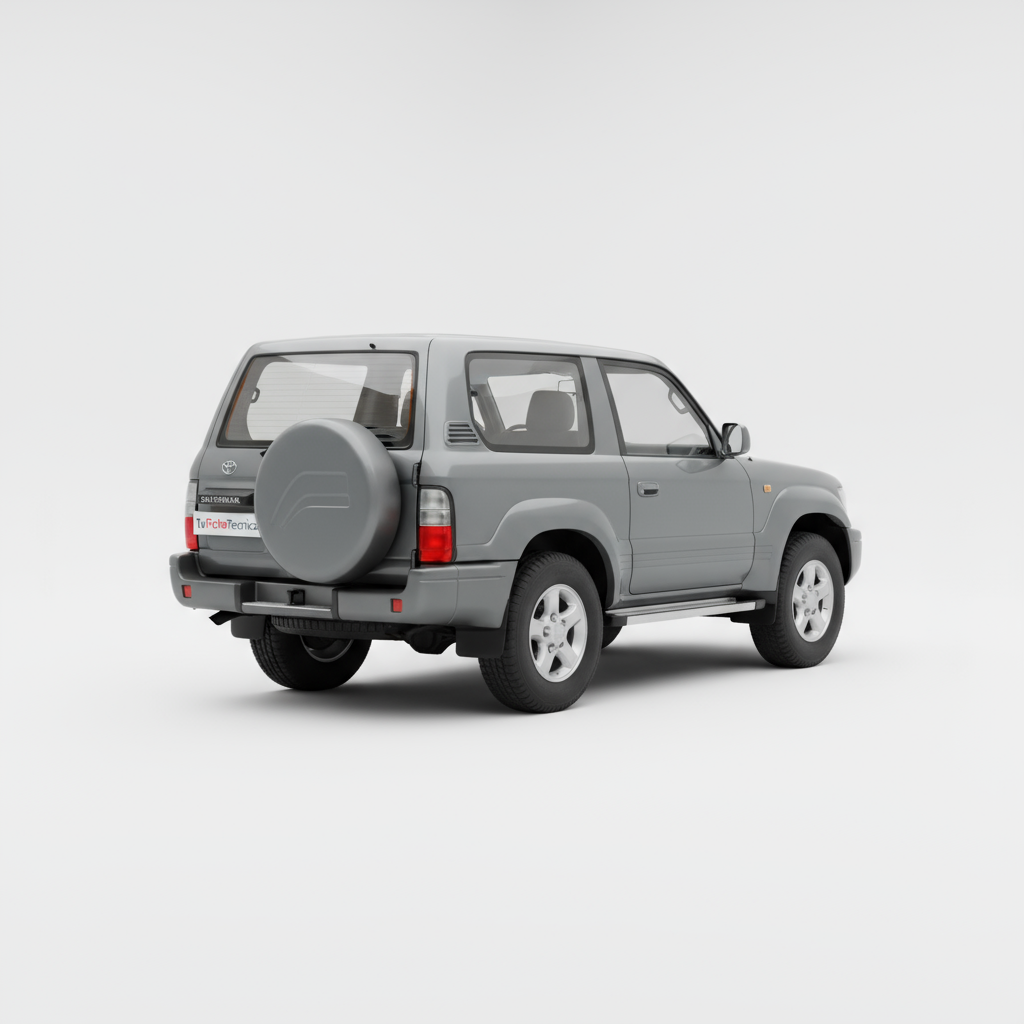 O design do Toyota Land Cruiser de 1996 é puramente funcional e intemporal. Com os seus 4.290 mm de comprimento, 1.730 mm de largura e 1.860 mm de altura, e uma distância entre eixos de 2.370 mm, este 3 portas projeta uma imagem de solidez e aventura. As linhas são retas e robustas, sem concessões à estética moderna, o que lhe confere um caráter inconfundível. As rodas com pneus 215/80 R16 e jantes de 6 x 16 polegadas reforçam a sua aparência todo-o-terreno. O interior, com 5 lugares e uma bagageira de 450 litros, prioriza a praticidade e a durabilidade, elementos chave para um veículo da sua categoria.