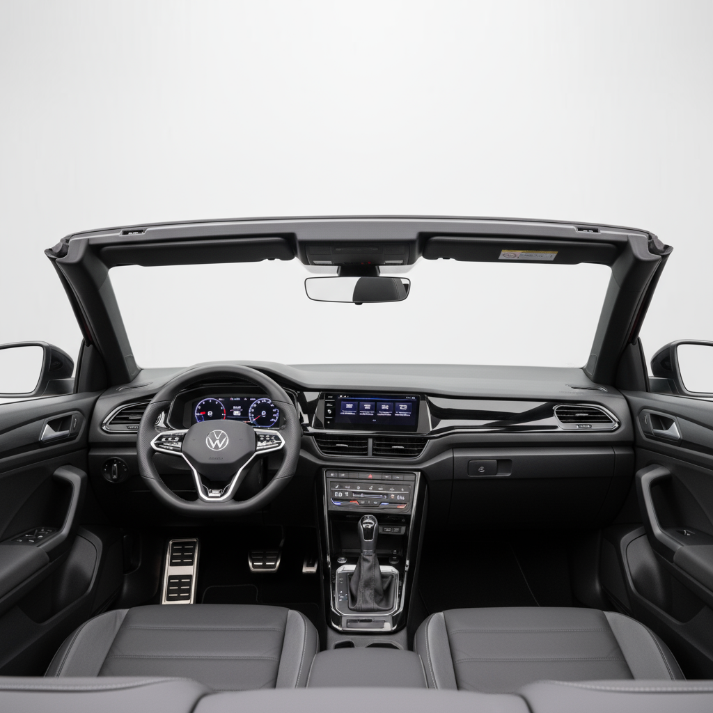 O design do T-Roc Cabrio R-Line é inconfundivelmente Volkswagen, mas com um toque de ousadia. A sua silhueta de SUV descapotável é única no mercado, atraindo olhares por onde passa. A linha R-Line acentua o seu caráter desportivo com detalhes específicos que realçam o seu apelo. As jantes de 19 polegadas e os arcos das rodas marcados conferem-lhe uma presença robusta, enquanto a capota de lona, disponível em várias cores, integra-se perfeitamente no conjunto, conferindo elegância e um toque de sofisticação. O interior, com capacidade para quatro ocupantes, mantém a qualidade e ergonomia típicas da marca, com um design moderno e funcional.